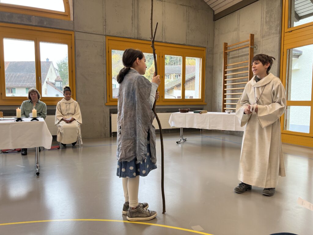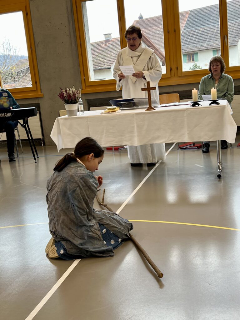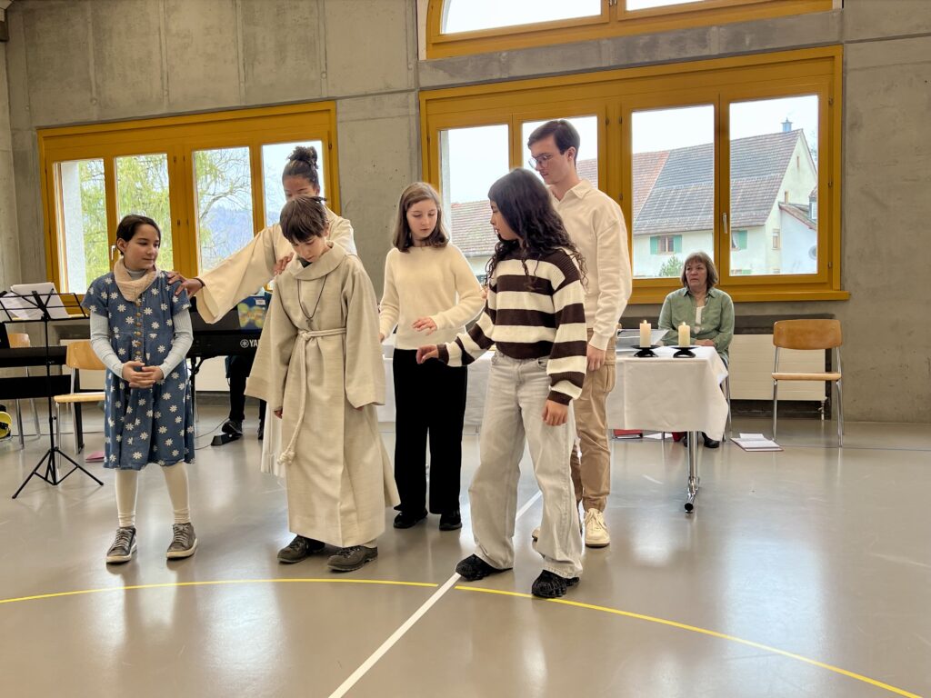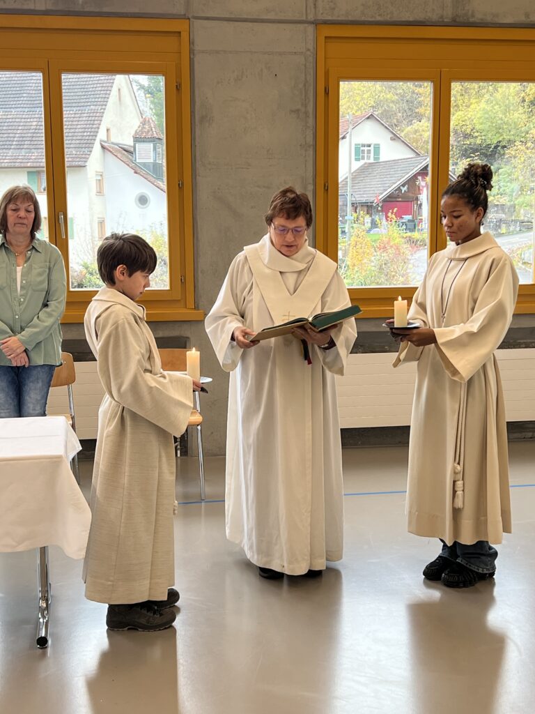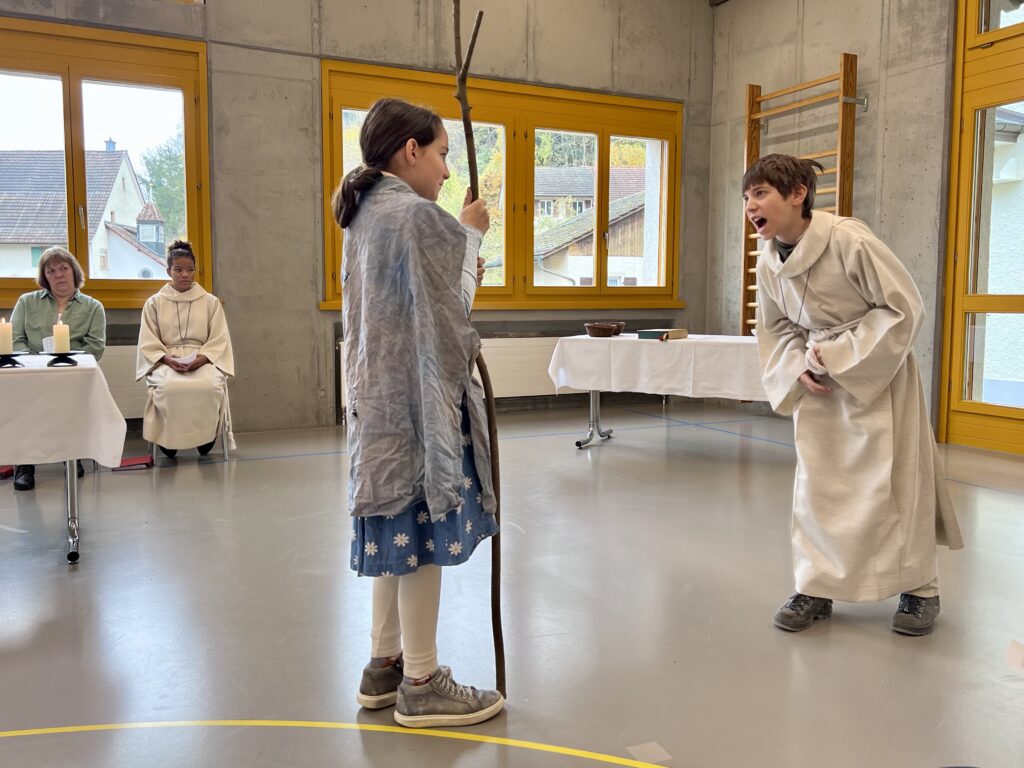 Ein besonderer Höhepunkt war die lebendige Darstellung der Martinsgeschichte durch die Ministrantinnen und Ministranten aus Bad Zurzach. Mit viel Engagement spielten sie die bekannte Szene nach, in der Martin seinen Mantel mit einem frierenden Bettler teilt. Begleitet wurde das Spiel von kräftigen Gesängen der Gemeinde.