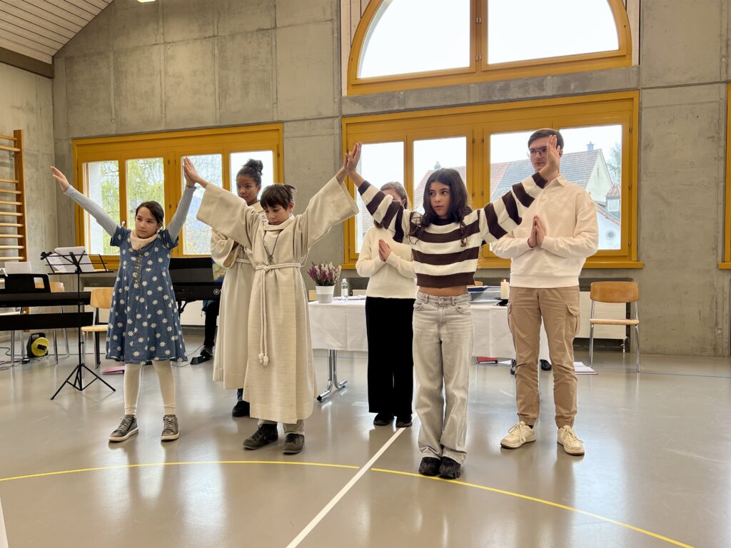 Musikalisch bereicherten Organistin Claudia Griesser und die „Verena-Mini-Band“ unter Leitung von Anita Friemelt die Feier. Ein besonderer Moment war der Tanz der Minis zum Friedensgruß unter den Klängen von „Shalom chaverim“.