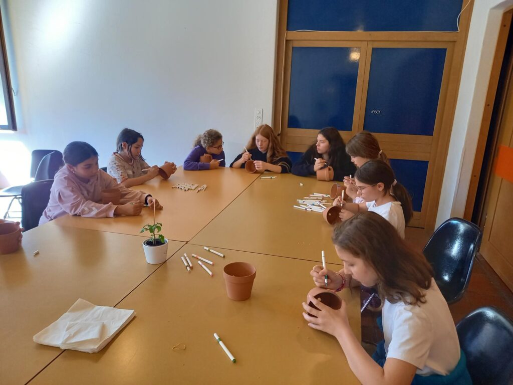 Die Mittagspause bot vielfältige Möglichkeiten: einen Film schauen, kreativ einen Blumentopf bemalen und ein Senfkorn pflanzen oder draußen spielen und toben – für jede und jeden war etwas dabei.