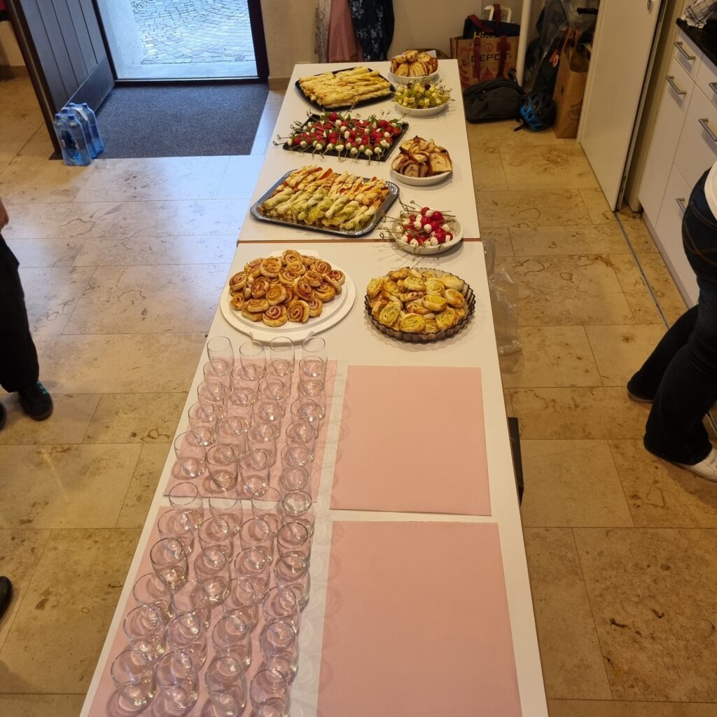 Die Gemüse- und Fleischspiesse auf dem Grill sowie die verschiedenen Salate und der Kartoffelgratin schmeckten hervorragend und natürlich fehlte auch ein süsser Abschluss nicht.