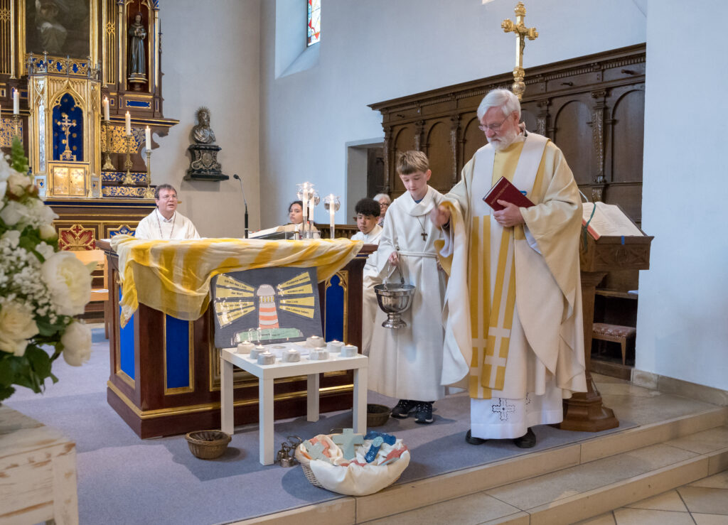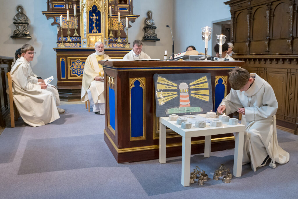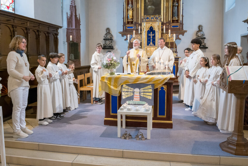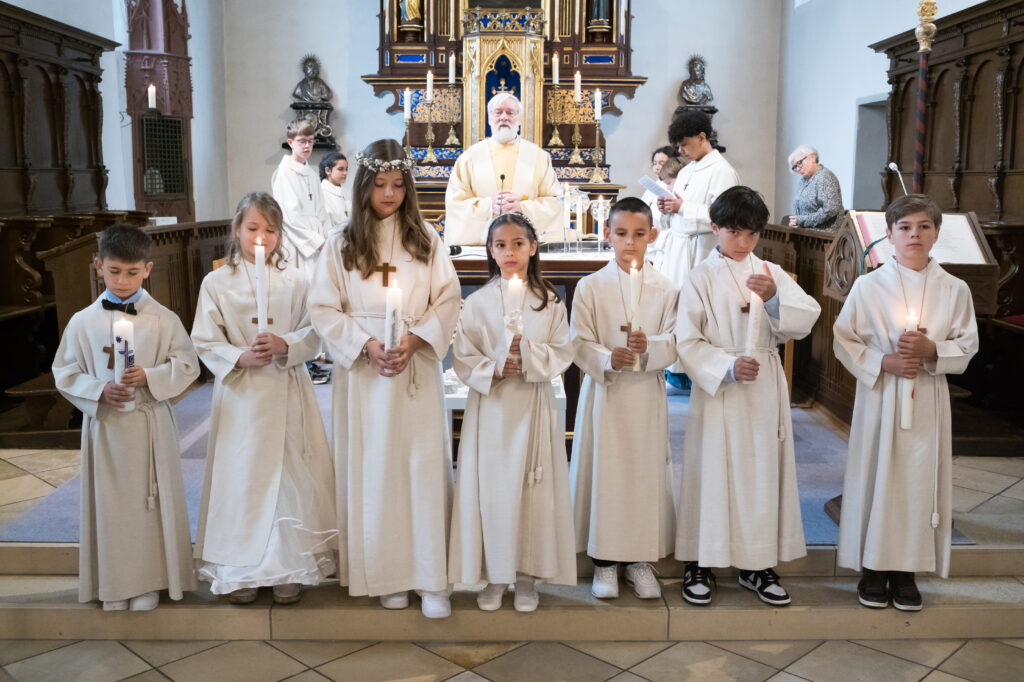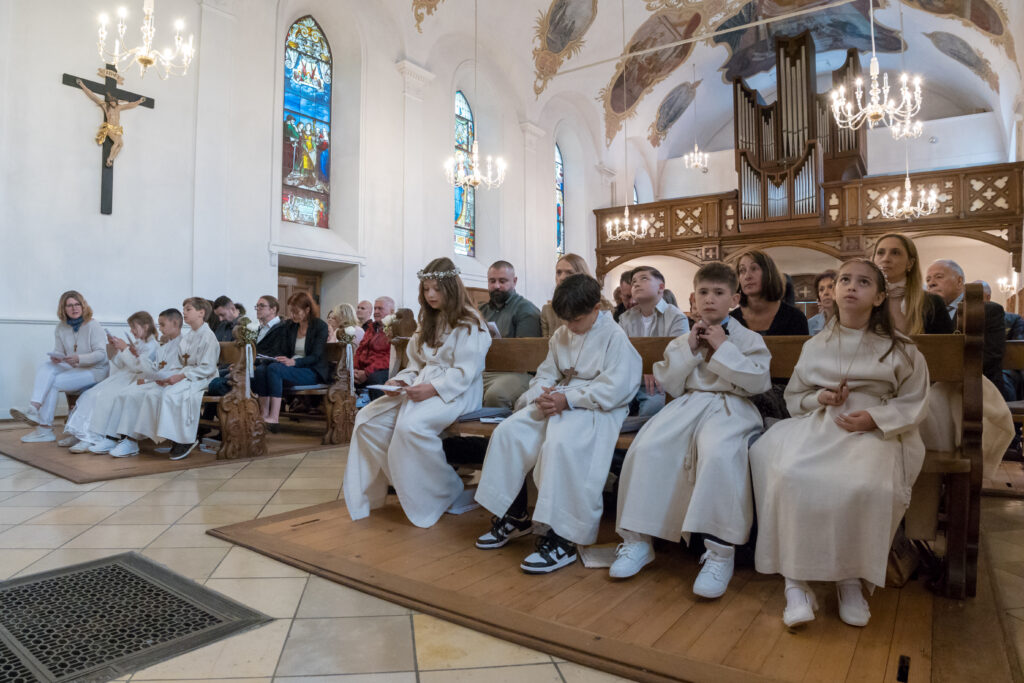 Nach dem Decken des Altars durch die Kommunionkinder, der Wandlung und Gebeten gab Bernhard Ollmert jedem Kind die Hostie mit den Worten: «Der Leib Christi». Ruhig und ehrfürchtig setzten sie sich an ihren Platz und genossen den feierlichen Augenblick.