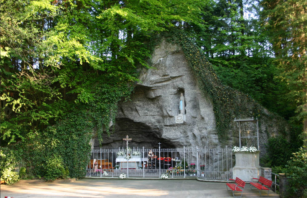 Zum Abschluss zeigte Arthur Vögele einen weiteren Kraftort im Zurzibiet: Die Lourdes-Grotte ausserhalb Leuggern. Eine Reise nach Lourdes inspirierte 1929 den damaligen Leuggemer Pfarrer Franz Xaver Knecht, eine Grotte mit den exakt gleichen Massen wie die Originalstätte in den Pyrenäen am Guntebach zwischen Leuggern und Hettenschwil detailgetreu nachbauen zu lassen. Heute noch pilgern Jahr für Jahr unzählige Gläubige an diesen idyllischen Ort der Besinnung und Andacht.