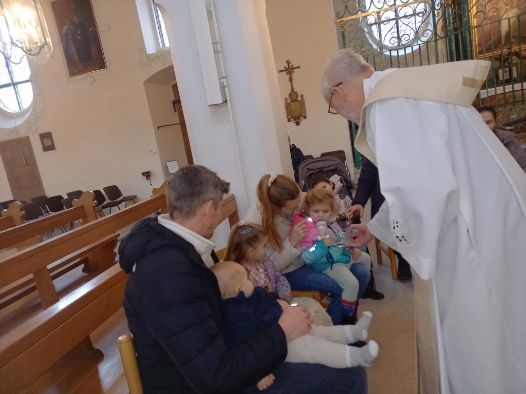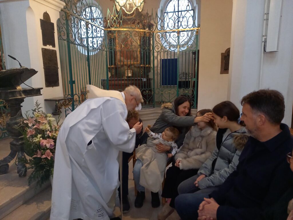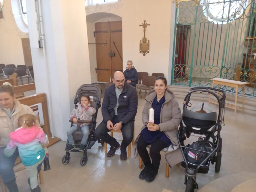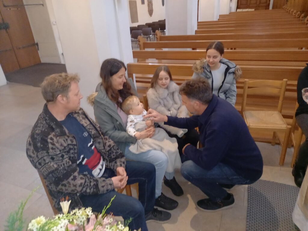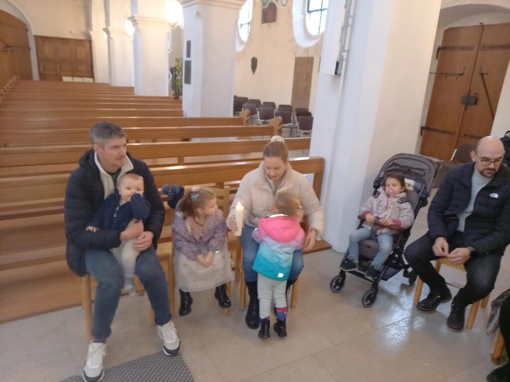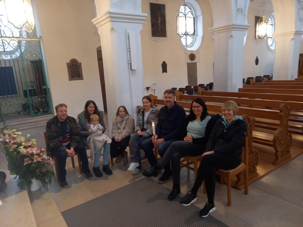 Am Samstag, 31. Januar, durften wir alle Tauffamilien des Jahres 2025 aus unserem Pastoralraum zu einer stimmungsvollen Taufnachfeier begrüssen. Nach einem herzlichen Willkommen erinnerten wir gemeinsam daran, dass das Kreuzzeichen mit dem Weihwasser am Kircheneingang uns jedes Mal neu an unsere eigene Taufe erinnert. Anschliessend reichte der Pfarrer ein Schälchen mit Weihwasser durch die Reihen – ein berührender Moment, in dem sich die Familien gegenseitig segnen durften.