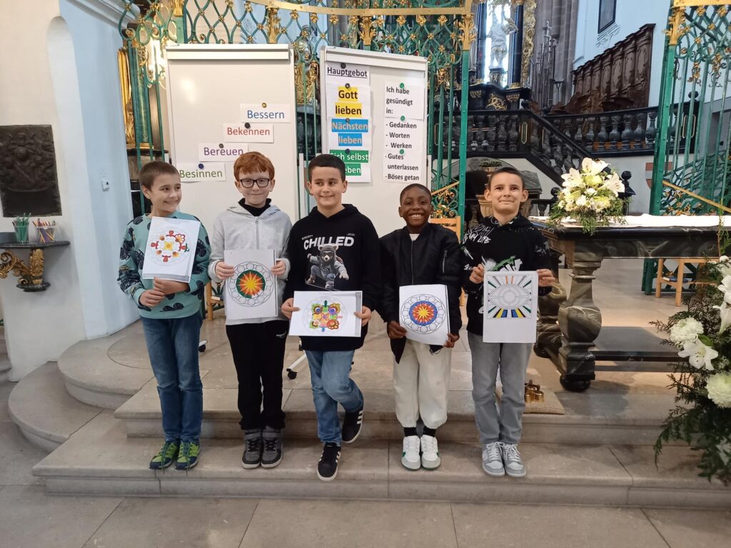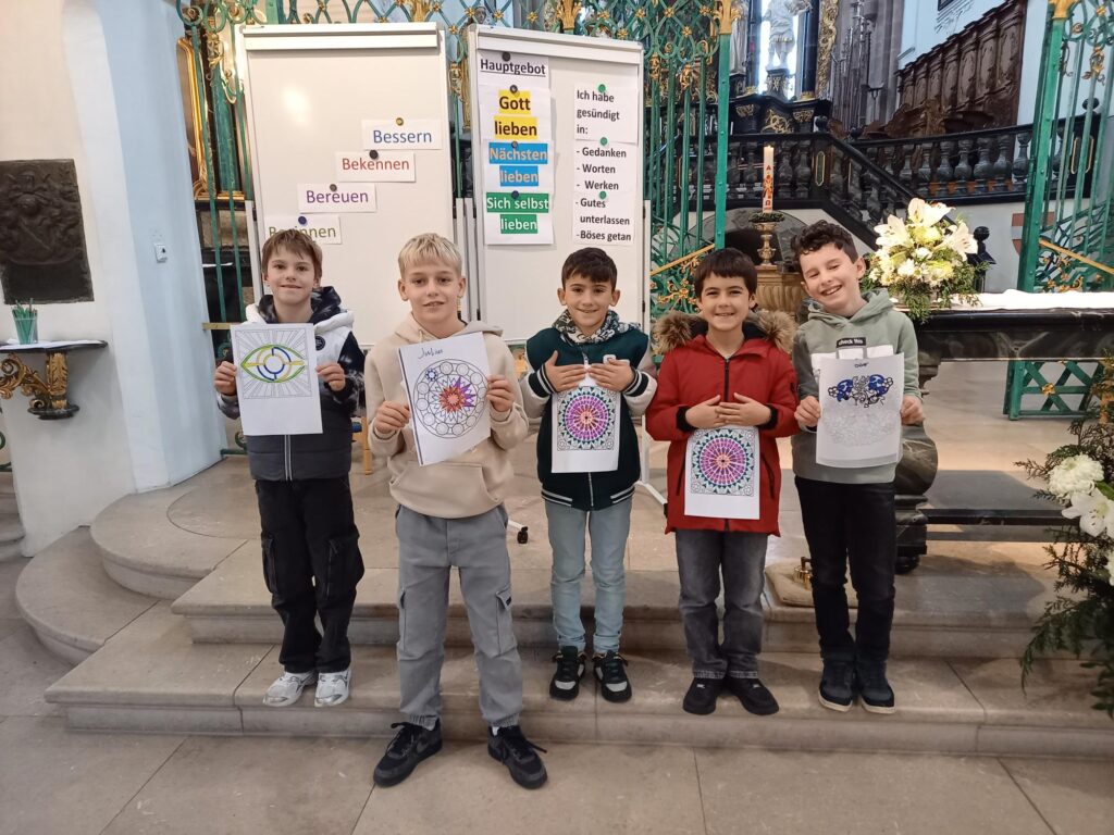 - In der Kirche: Möglichkeit zur Beichte, Kerze entzünden, Mandala gestalten